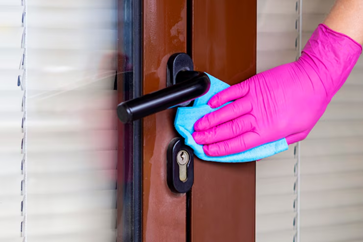 Dusting and wiping down desks, tables, and other work surfaces to remove dust and smudges. Cleaning and disinfecting computer keyboards, monitors, and telephones. Sanitizing common touchpoints like doorknobs, light switches, and elevator buttons.