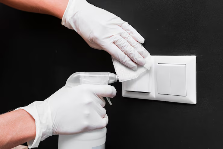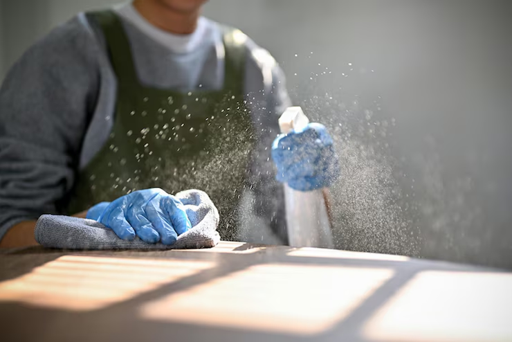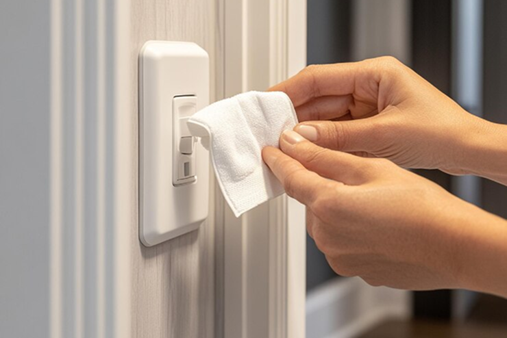 Dusting and wiping down desks, tables, and other work surfaces to remove dust and smudges. Cleaning and disinfecting computer keyboards, monitors, and telephones. Sanitizing common touchpoints like doorknobs, light switches, and elevator buttons.